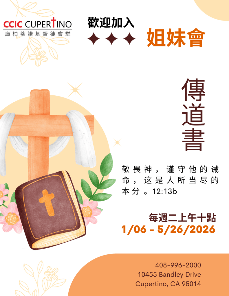 姊妹會是一個專門為姐們妹提供的團契 。 我們一起學習聖經的話語,彼此相愛,互相關懷扶持,見證神的恩典。除了查經,我們也會有專題、媽媽教室,感恩聖誕聚餐、新年團慶、生活見證分享 、 郊遊 …… 等多樣化的節目安排。歡迎各年齡層的姊妹及福音朋友們一同來參加 , 體驗在主𥚃姊妹們相聚在一起的豐富和喜悅。在聚會期間我們有顧嬰的服務。
