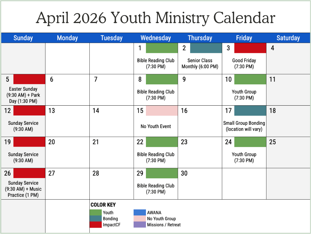 | Youth Ministers | Peter Hwang | peetah911@gmail.com | |||